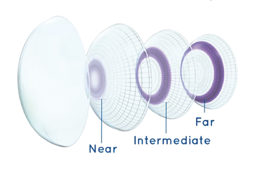 These lenses have different prescription zones built in. Your eyes naturally adjust to use the right zone depending on what you’re looking at, your phone, a book, or something across the room.